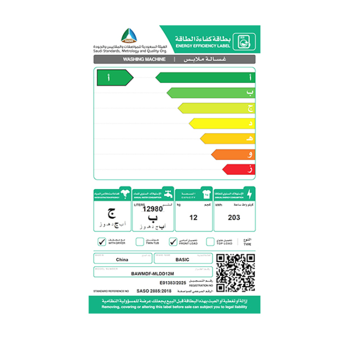 غسالة أوتوماتيك بيسك تعبئة أمامية 12 كيلو انفرتر غسالة أوتوماتيك بيسك تعبئة أما...